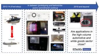 ????????模內(nèi)電子的原型種類繁多,從可穿戴技術(shù)的簡單設(shè)備,汽車內(nèi)裝,天線和白色家電觸摸面板到更復(fù)雜的傳感器、致動器和顯示器等。