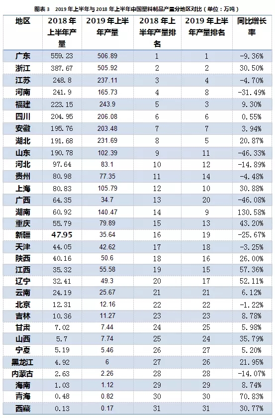 ????????2018年上半年產(chǎn)量前10名,山東、河北跌出2019年上半年產(chǎn)量前10,湖南、上海進(jìn)入2019年上半年前10。