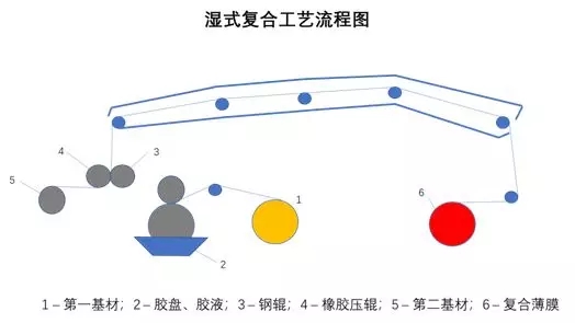 ????????使用濕式復合時,兩種基材中至少有一種是多孔性材料(如紙或紙板),以便膠粘劑中所含的稀釋劑在干燥時揮發出去。因此濕法復合廣泛用于紙/纖維、紙/紙、紙/紙板、紙/鋁箔等材料的復合。